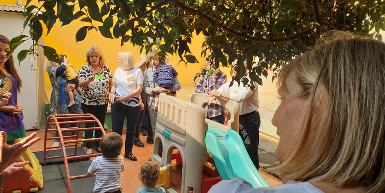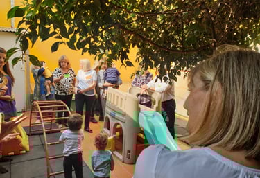 Son encuentros pensados para compartir: a través de la música, el juego y el baile, construimos un espacio común donde distintas generaciones se encuentran, se reconocen y se enriquecen mutuamente. Sabemos que esta red afectiva es fundamental, porque sostiene, contiene y fortalece los vínculos de confianza y seguridad que hacen posible el desarrollo.