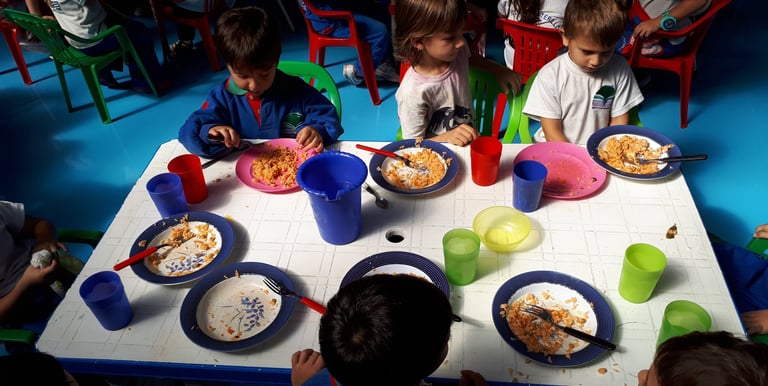 Los desayunos y las meriendas en el jardín son momentos especialmente cuidados y pensados para que las niñas y niños lo puedan vivenciar placenteramente. Cuidamos una alimentación sana, queremos que los chicos puedan abrirse en los gustos y nuevos sabores. Para que puedan incorporar la verdura, las frutas, los cereales, y algunos lácteos. Cada día tanto a la mañana como a la tarde los chicos comparten una colación ( té-agua) donde prueban estos alimentos que ellos mismos traen de sus casas según lo anticipado previamente