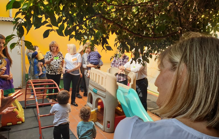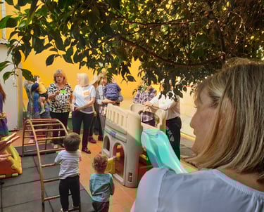 Son encuentros pensados para compartir: a través de la música, el juego y el baile, construimos un espacio común donde distintas generaciones se encuentran, se reconocen y se enriquecen mutuamente. Sabemos que esta red afectiva es fundamental, porque sostiene, contiene y fortalece los vínculos de confianza y seguridad que hacen posible el desarrollo.