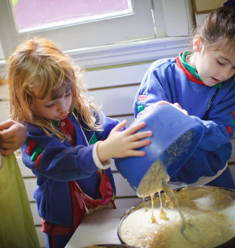 Generamos condiciones que respeten los tiempos de maduración de cada niña y niño en cuanto a satisfacer el placer por el agua y el contacto manual con diferentes sustancias.